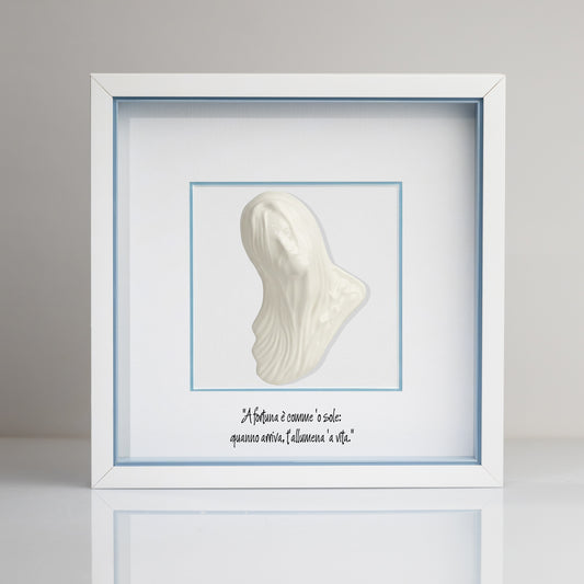 Bella Mbriana Bianca in Ceramica con Cornice e Frase Personalizzabile