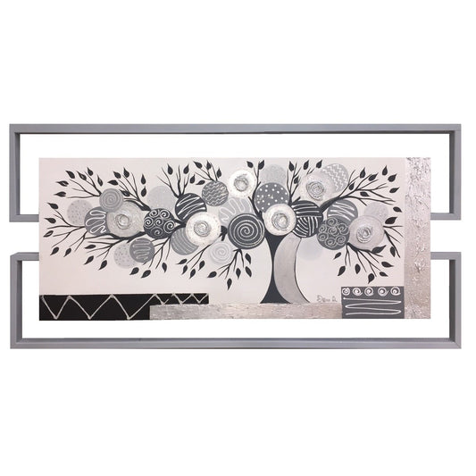ASTRATTO DOPPIA TELA COLORI NERO / GRIGI , DETTAGLI IN ROSSO CON DECORI ARGENTO