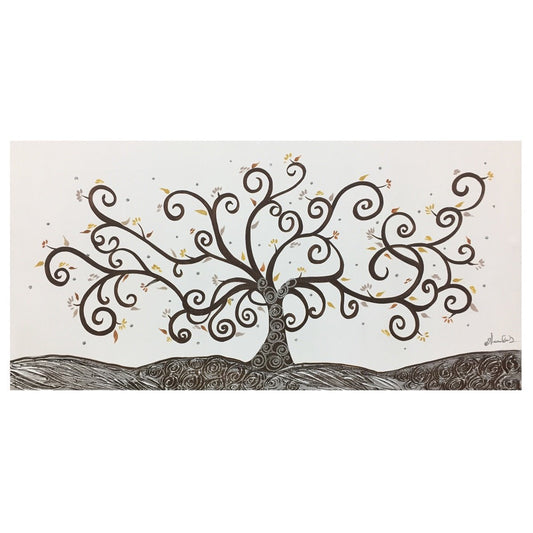 DIPINTO ALBERO OLIO SU TELA APPLICATA SU TELAI