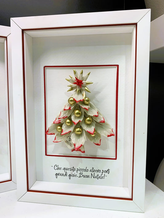 Albero di Natale in Ceramica di Capodimonte con Cornice colore rosso