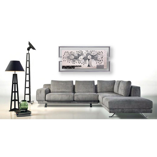 ABSTRACT DOUBLE CANVAS, GREY COLORS, SILVER DETAILS, SILVER BASE CANVAS