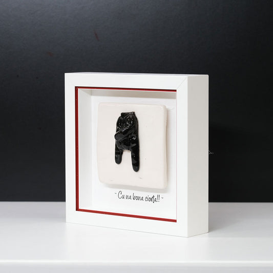 “Corna Nere” Ceramic Tile with Wooden Frame – Customizable Neapolitan Craftsmanship