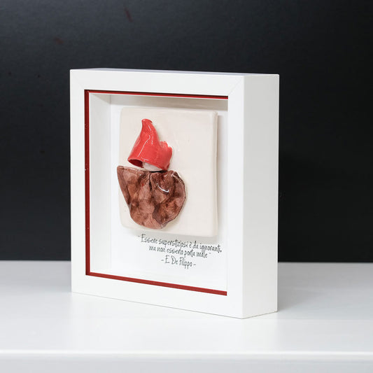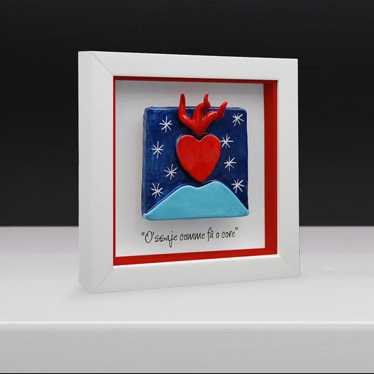 “Red Horns” Ceramic Tile with Wooden Frame – Customizable Neapolitan Craftsmanship
