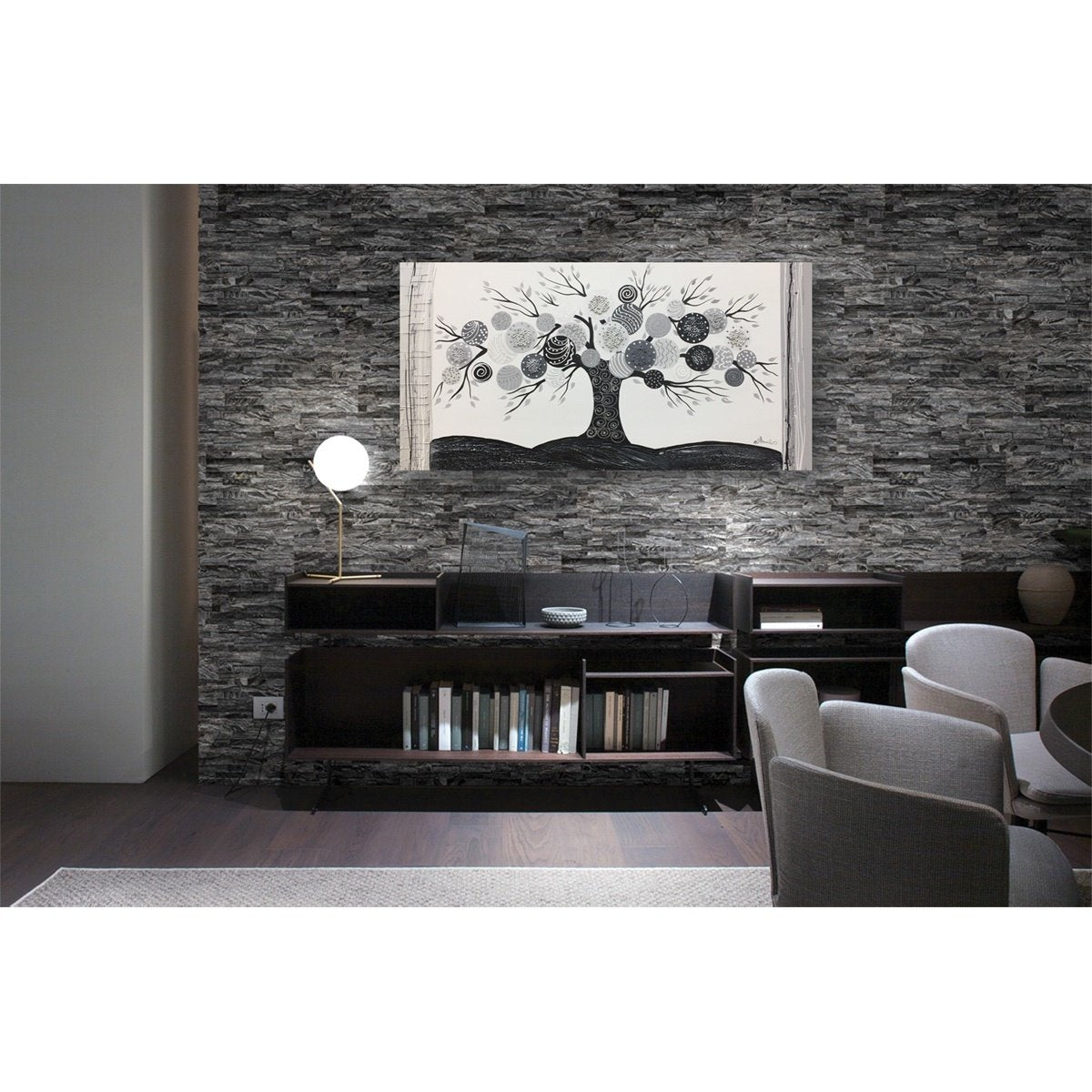 Dipinto olio su tela sintetica con telaio in abete da 4cm. Il dipinto è realizzato su tela unica con applicazioni materiche, con particolari in polvere brillantinata per dare un tocco di luminosità. Dimensioni: 70x140