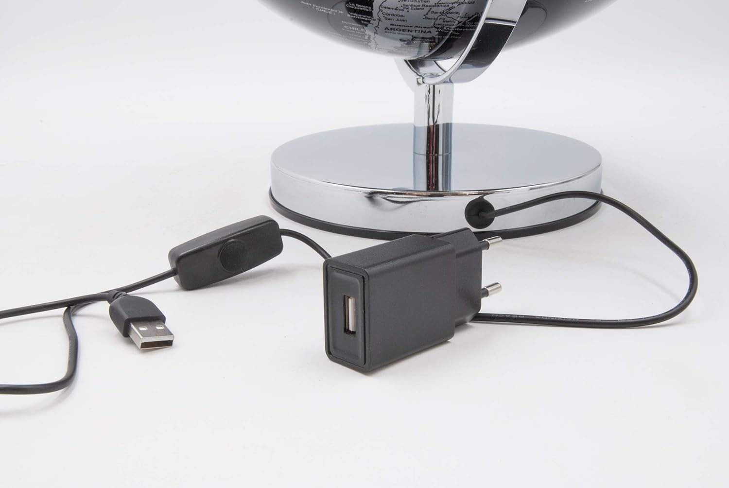 Aggiungi un tocco di eleganza e modernità al tuo ambiente con il nostro mappamondo luminoso, un pezzo unico che unisce funzionalità e design sofisticato. La base in metallo argentato e la sfera in metacrilato trasparente di 30 cm di diametro rendono questo mappamondo una vera e propria lampada da compagnia. L'illuminazione a LED integrata offre un'atmosfera calda e accogliente, perfetta per ogni ambiente, sia in casa che in ufficio.