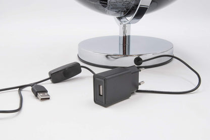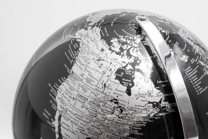 Mappamondo Decorativo Luminoso con Illuminazione a LED - Base in Metallo Argentato e Sfera in Metacrilato (Diametro 30 cm)