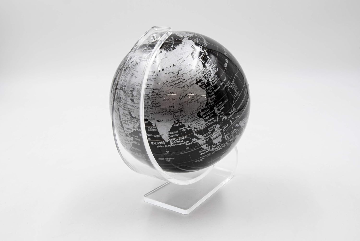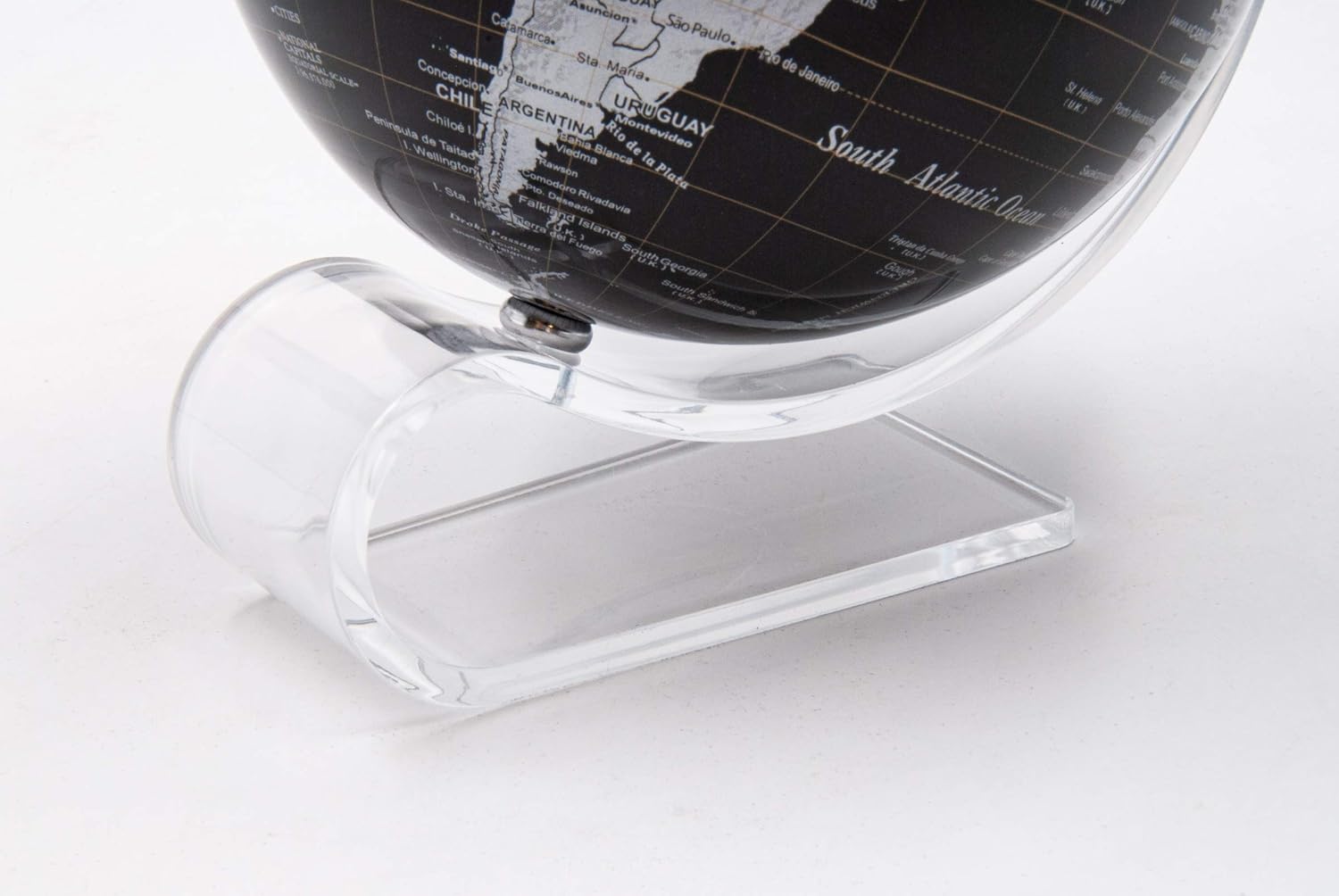 Scopri un elegante mappamondo in miniatura con base in plexiglass trasparente, perfetto per arredare la tua scrivania o come regalo originale. Con un diametro di 13 cm, questa mappa dettagliata e facilmente leggibile ti permette di esplorare il mondo in scala ridotta, con colori vivaci e ben definiti. La finitura nera del mappamondo dona un tocco di modernità e raffinatezza, mentre il piedino in plexiglass garantisce stabilità e un design minimalista. Ideale per chi ama il design moderno e la geografia. Un accessorio funzionale e decorativo, perfetto per uffici, studi o come complemento d’arredo.