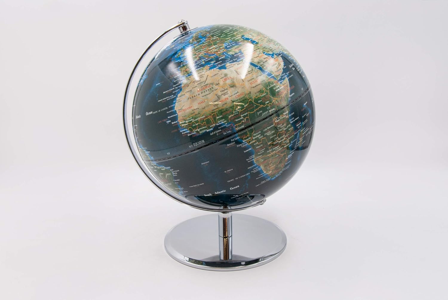 Mappamondo Elegante con Base in Acciaio e Sfera in Metacrilato - Diametro 25 cm Colore Blu