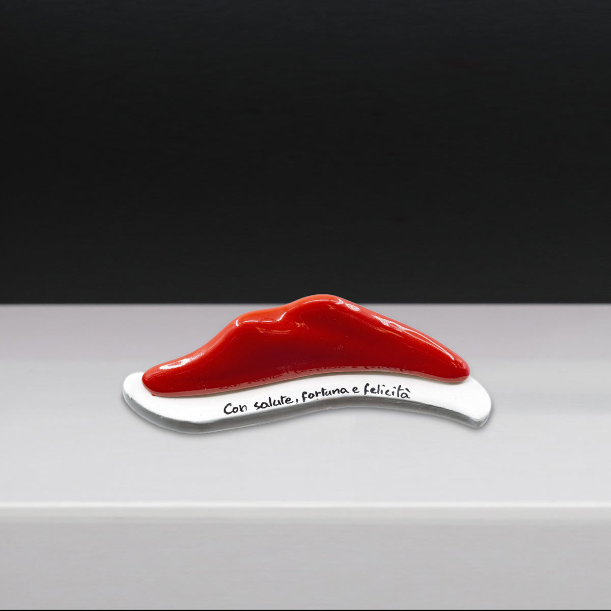 Un piccolo ma potente simbolo dell’identità napoletana. Questo elegante oggetto artigianale raffigura un Vesuvio d’appoggio in ceramica rossa, espressione vivace della passione e dell’energia che caratterizzano la città di Napoli.